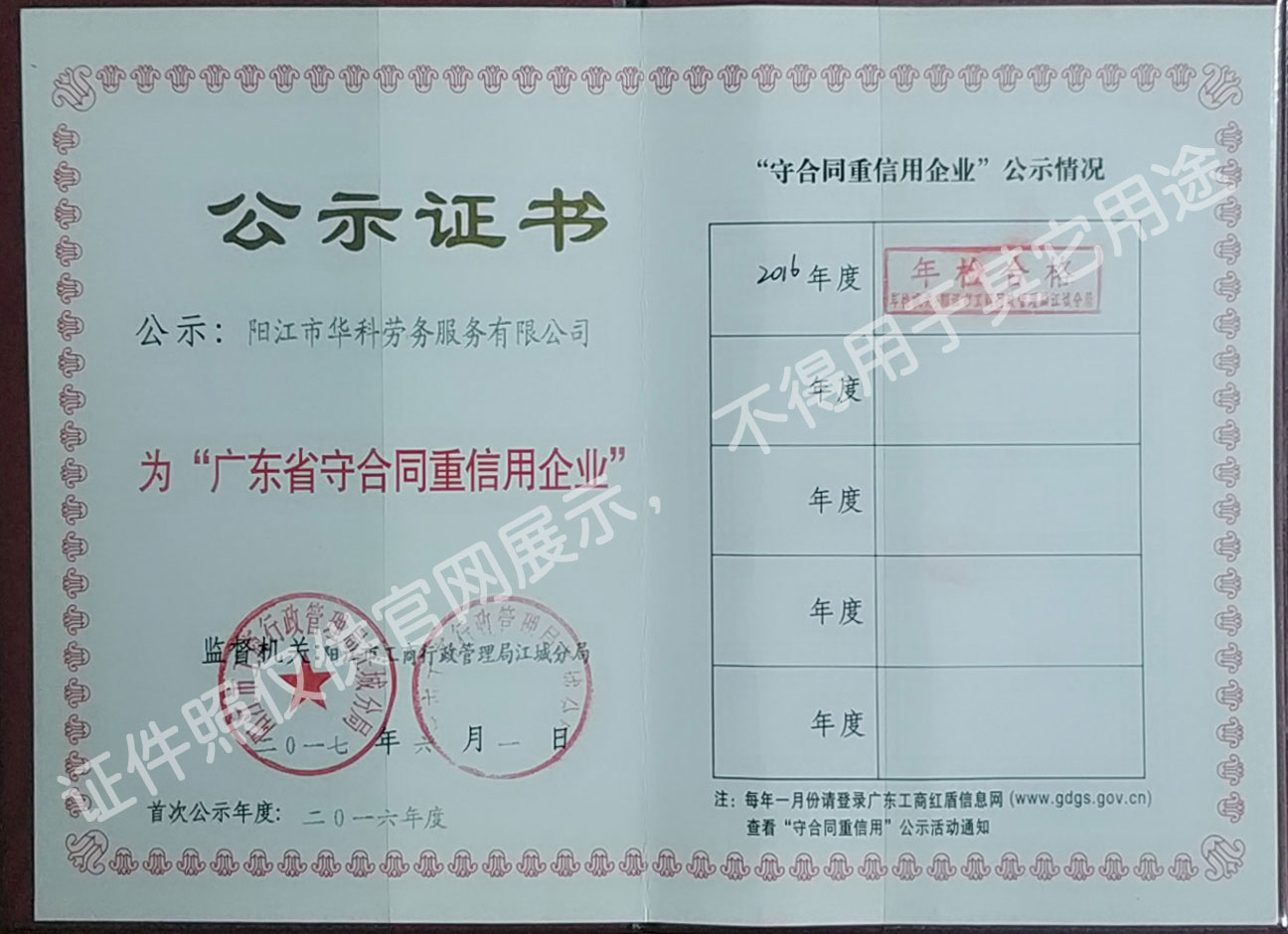 華科勞務(wù)服務(wù)有限公司是專業(yè)從事人事代理、勞務(wù)租賃、人力派遣及管理的綜合性服務(wù)機構(gòu),是首批獲得廣東省人力資源廳、陽江市勞動和社會保障局頒發(fā)人力資源許可證的合法單位。公司秉承“誠信務(wù)實、專業(yè)熱情、滿意第一、服務(wù)社群”的經(jīng)營理念,在勞務(wù)派遣業(yè)務(wù)的基礎(chǔ)上,更致力于合同制工人(臨時工、實習(xí)生、假期工)方向發(fā)展,為用工企業(yè)及時輸送合格的各類人才,合理調(diào)配人力資源的有序流動,幫助求職者尋求更加滿意的就業(yè)渠道和崗位,切實維護求職者的合法權(quán)益。
